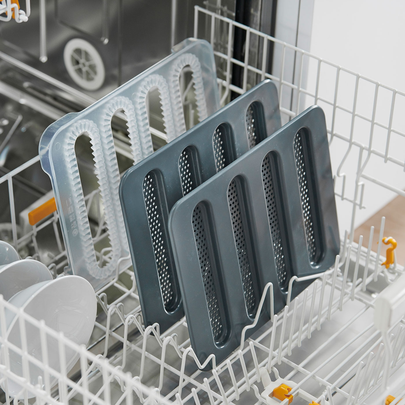 Avec le set de plaques pour bâtonnets feuilletés garnis, vous préparez en un rien de temps un repas délicieux qui plaira à toute votre famille. Vous réalisez huit bâtonnets garnis sur deux plaques – facilement, proprement et confortablement. Les plaques perforées revêtues garantissent, grâce à une circulation optimale de l’air, des bâtonnets feuilletés extra croustillants, dorés de manière uniforme, sans qu’ils n’attachent.